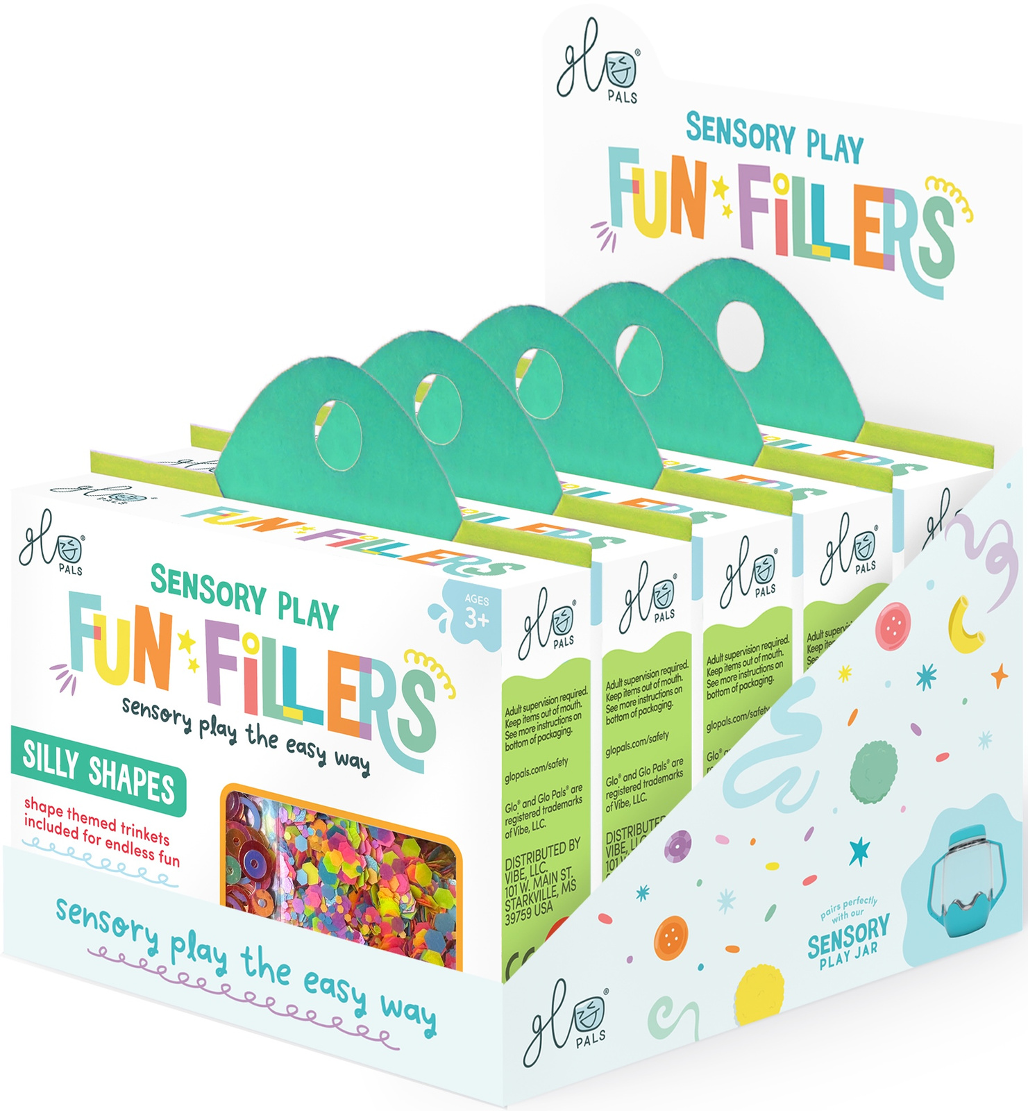 • Fun Fillers je tematická sada senzorických doplňků, která obohacuje vodní hry, senzorické sklenice Glo Pals a různé manuální aktivity.