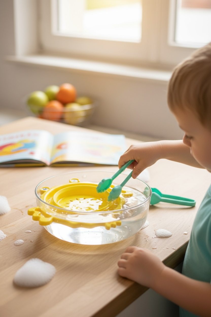 Ideální sada senzorických doplňků pro uchopování, přenášení, třídění, prosévání a překládání! 3 doplňky, ale tolik možností využití! Sada obsahuje: rozkládací sítko, chapadlový úchop – oliheň (úchop lze rozdělit na dvě samostatné části!) a kleště ve tvaru mušle.