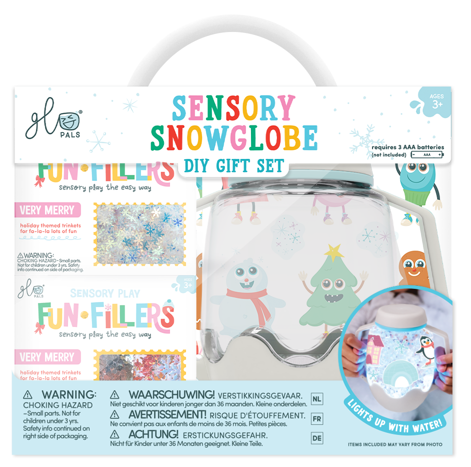 Glo Pals, Sněžení, Senzorická sada , senzomisky sklenice s kouzelnými doplňky a samolepkami