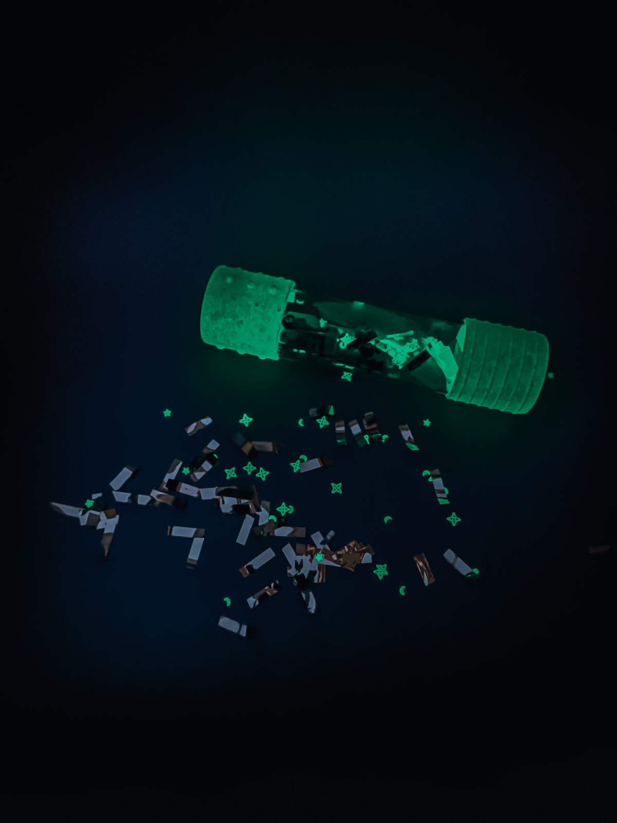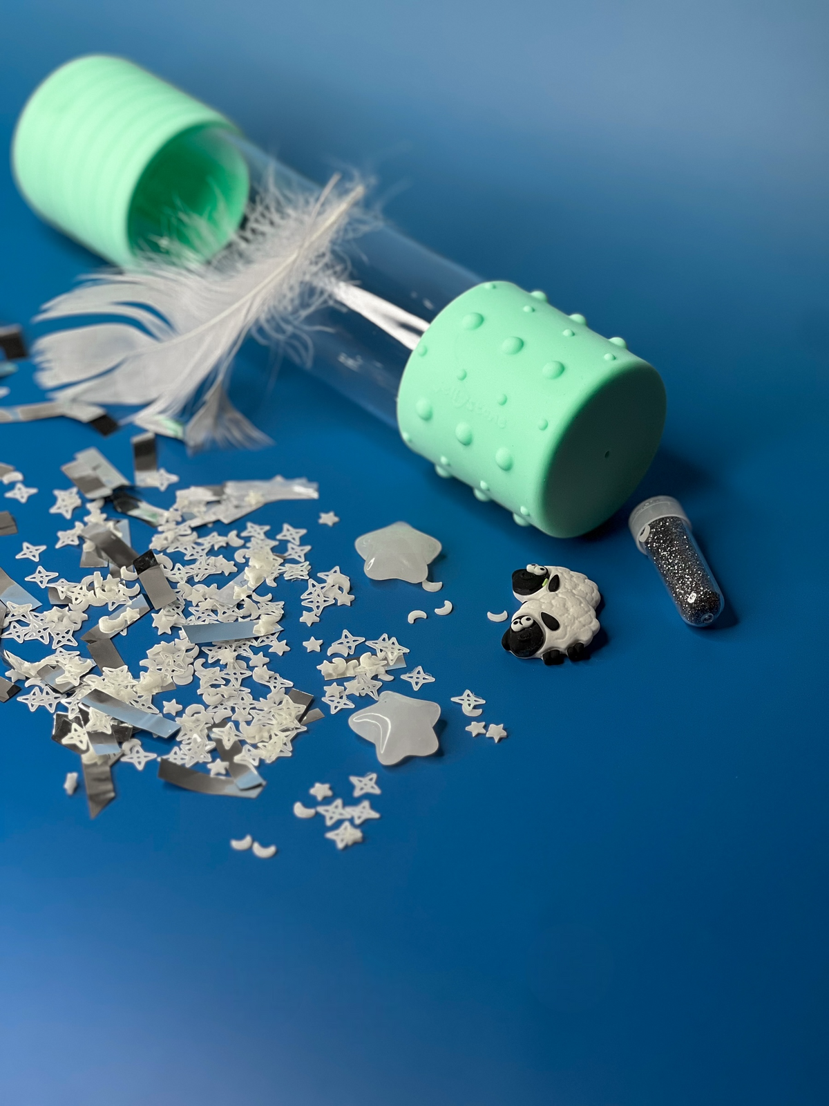 Když zhasnou světla, Glow-in-the-Dark Calm Down Bottle dál září. Navržena pro uklidnění před spaním nebo tichou hru, její jemné světlo a vířící třpyt pomáhají dětem uvolnit se a cítit se v bezpečí.