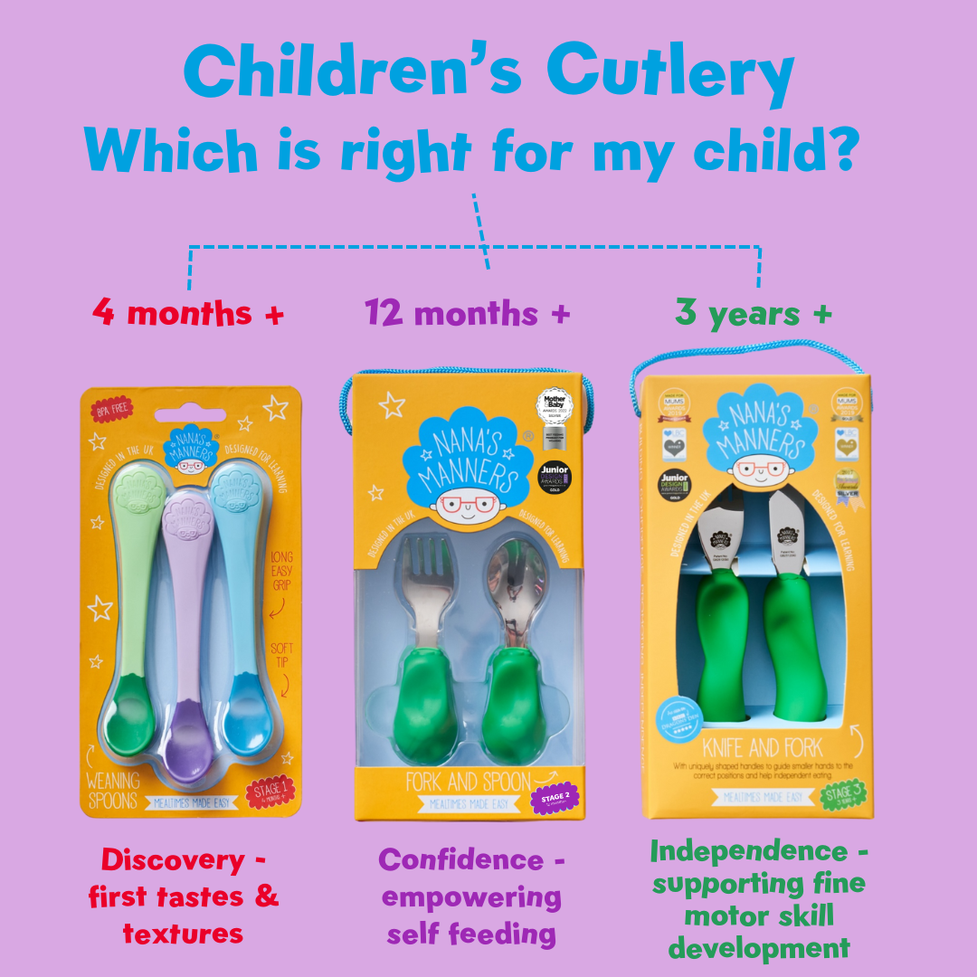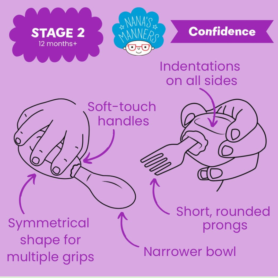 Naprosto intuitivní. Každodenní stravování s Nana's Manners pomáhá posilovat svaly ruky a procvičovat jemnou motoriku.