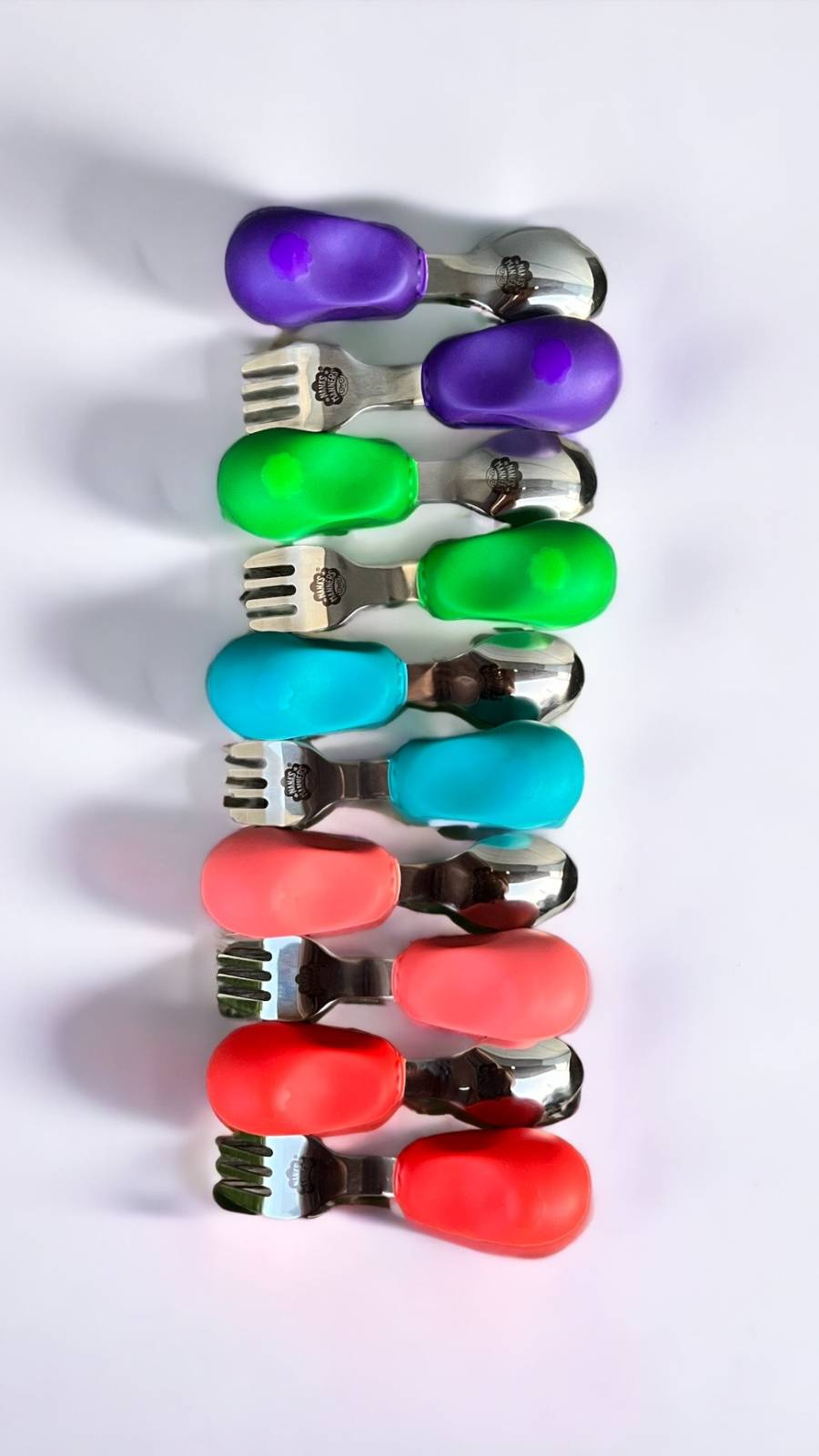 Příbory procvičující úchop ruky (Palmar Grip) a uchopování pinzetovým úchopem pomocí ukazováčku a palce.