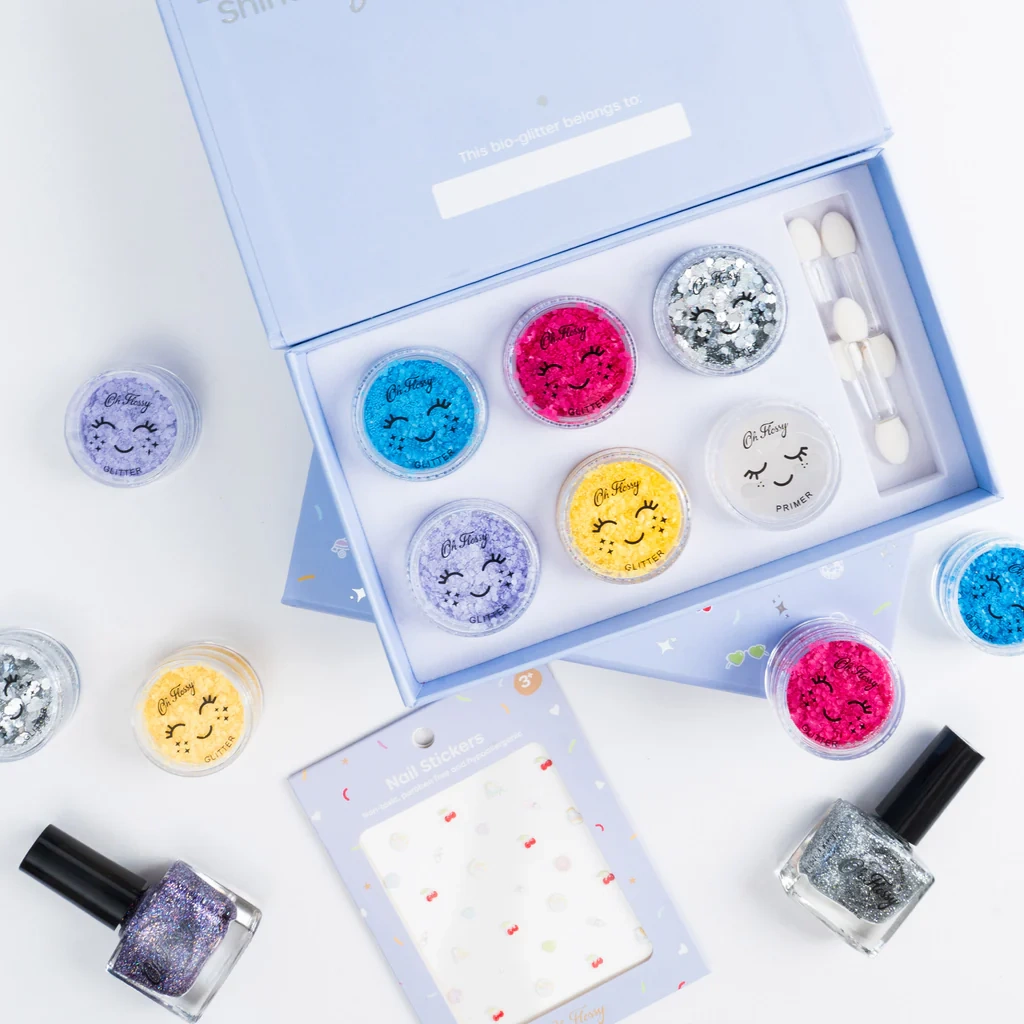 Sady s bio třpytkami Oh Flossy jsou bezpečnou volbou pro děti i naši planetu! Vytvořeny bez chemikálií a konzervantů, jsou zcela netoxické a hypoalergenní. Veganské složení na bázi přírodních složek nedráždí ani citlivou pokožku, takže je vhodné pro každodenní hraní i výjimečné příležitosti. Naše třpytky, certifikované jako biologicky odbouratelné ve vodě, jsou vyráběny z eukalyptu, což je činí měkčími a jemnějšími než plastové třpytky.