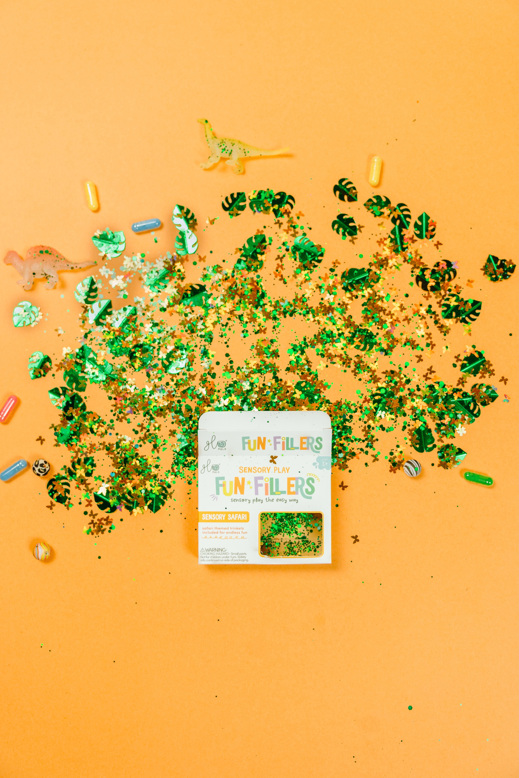 - Fun Fillers is a themed set of sensory accessories designed to enrich water play, Glo Pals sensory jars, and various hands-on activities.