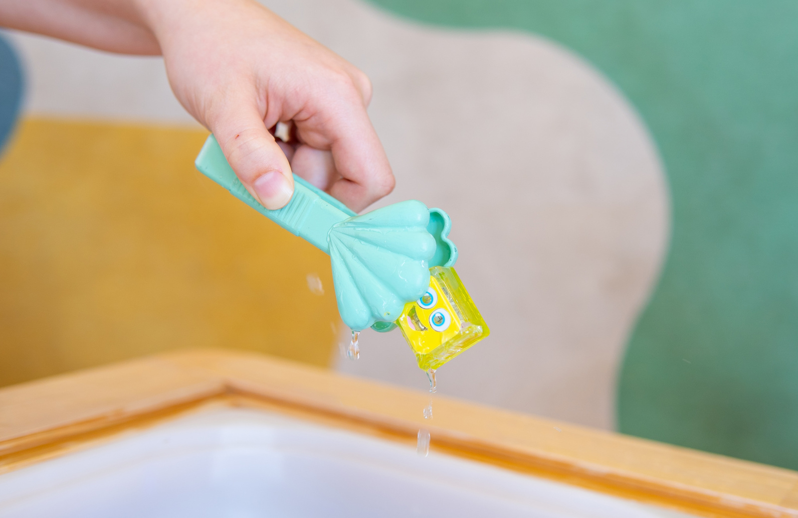 An ideal set of sensory accessories for grabbing, transferring, sorting, sifting, and scooping! 3 accessories and so many uses! The set includes a collapsible sieve, a squid-shaped grabber (the grabber can be detached to create two separate accessories!), and shell-shaped tongs.