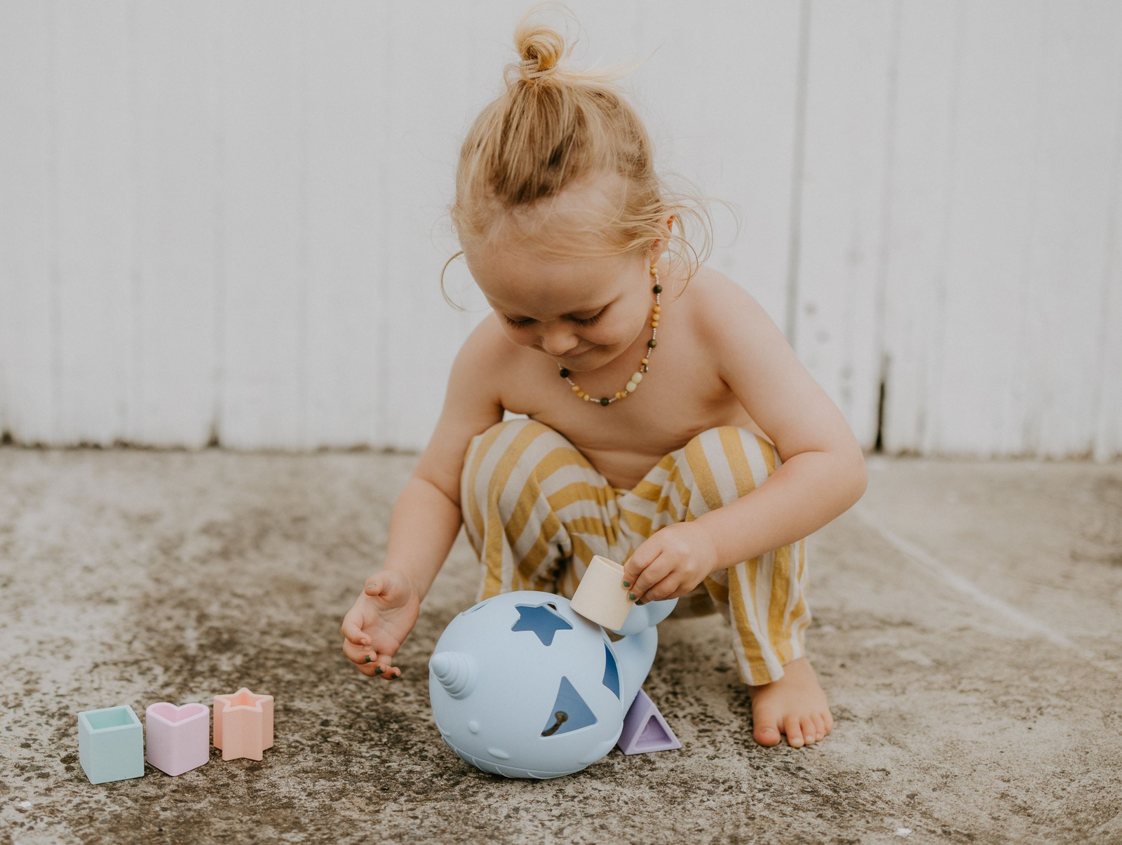- Meet a magical friend for learning through play! This charming shape sorter develops hand dexterity, teaches children to recognize colors and shapes, and is perfect for the bath, sandbox, or carpet.
