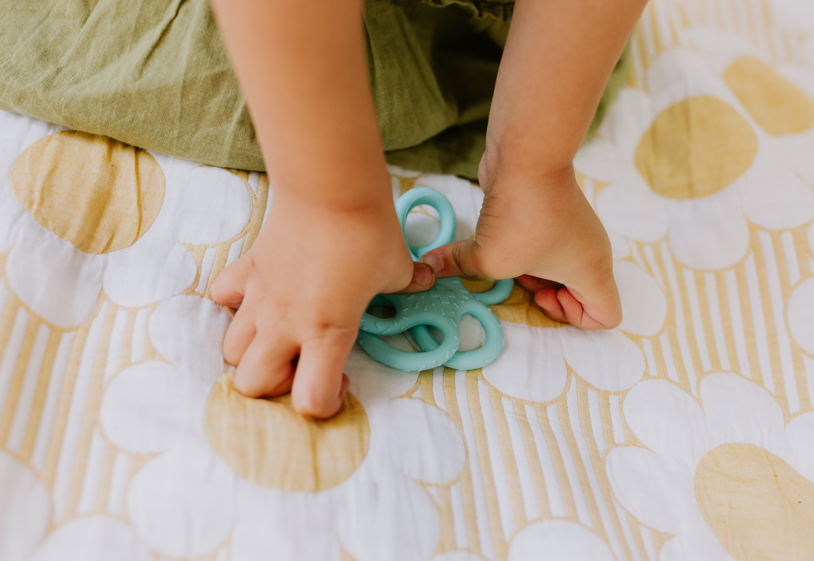 Free from any nasty chemicals, the Sensory Ball is made from food-grade silicone so babies can chew on the soft, safe surface to soothe their aching gums. The open frame design allows them to easily grab the Sensory Ball and bring it to their mouths when any toothy troubles arise.