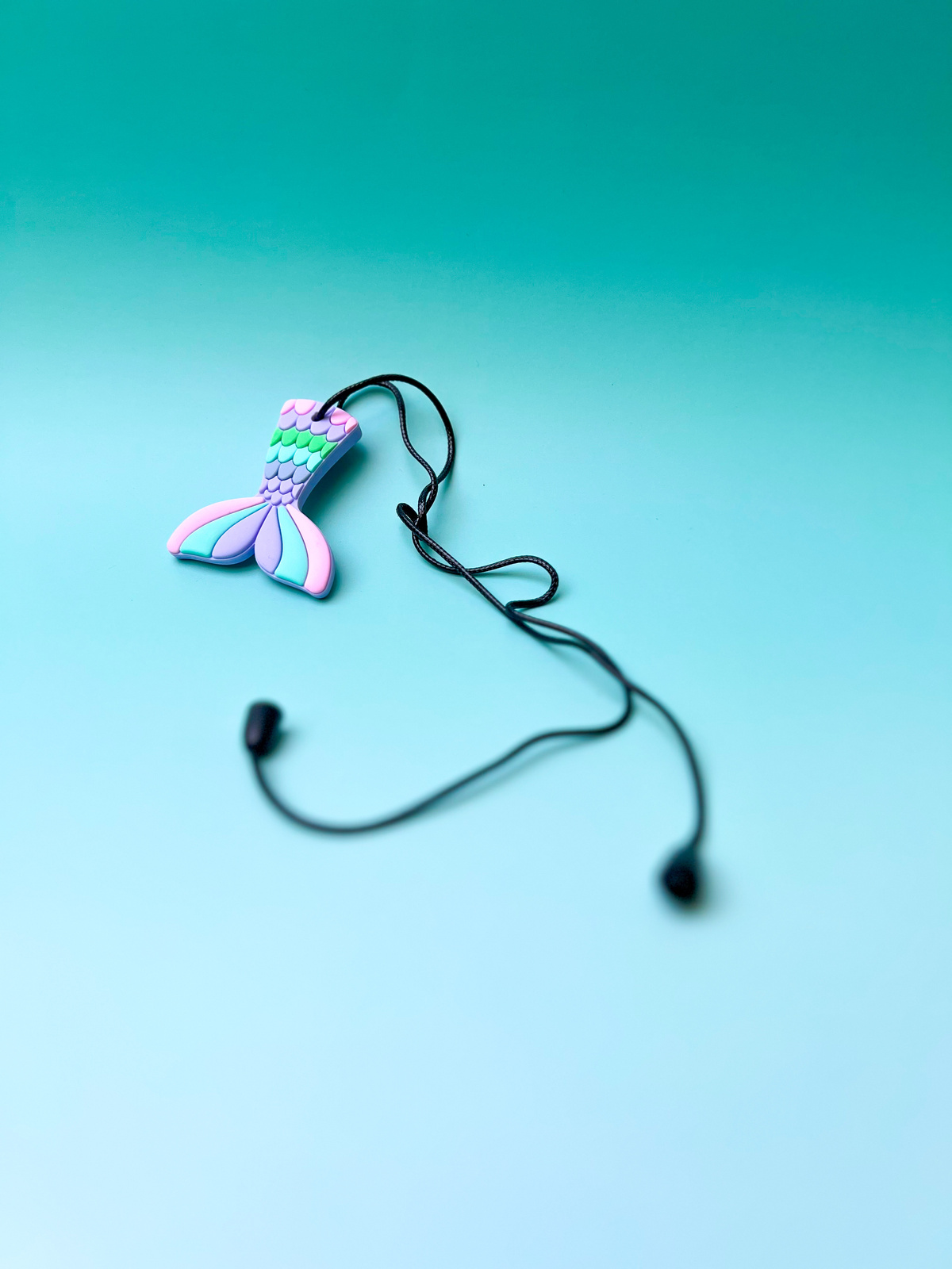 - This adorable sensory chew necklace in the shape of a mermaid tail was created to help children calm down and self-regulate. Made from safe, non-toxic, food-grade silicone (BPA free), it is gentle on the skin and durable even with intense chew