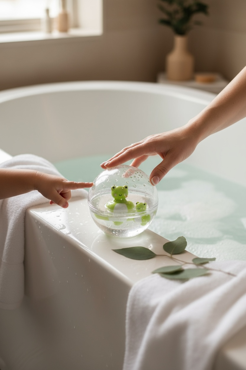 A sensory universe surrounds our new friends inside their own floating bubble. For playing, exploring and marvelling during bath time or at the pool.