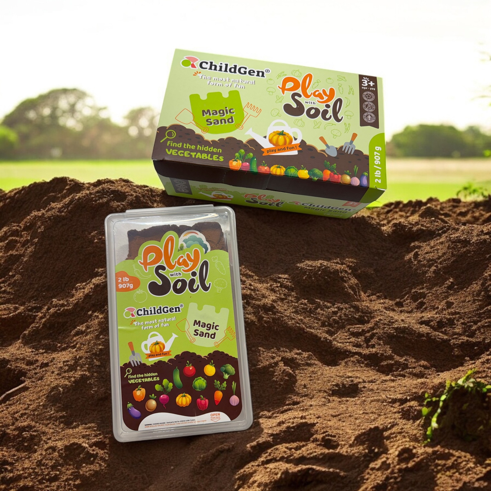 ChildGen, Piasek kinetyczny Mały ogrodnik, gleba z warzywami 100% naturalny, 907g w pojemniku