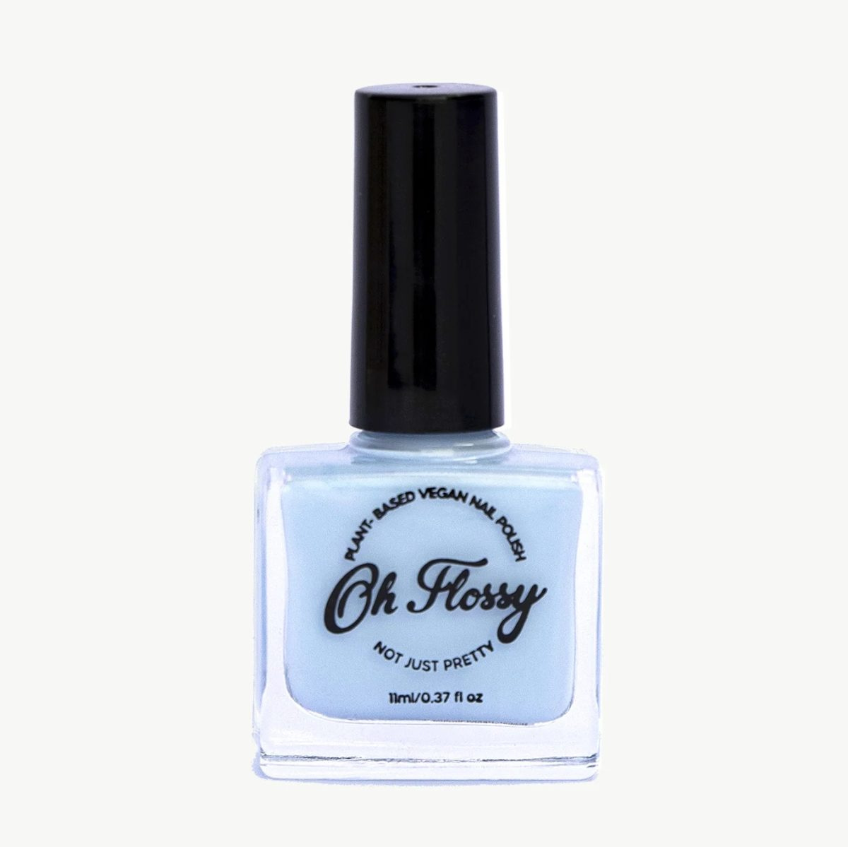 Oh Flossy, Lakier do paznokci Kremowy błękit, 12 ml, bio brokat, roślinna formuła